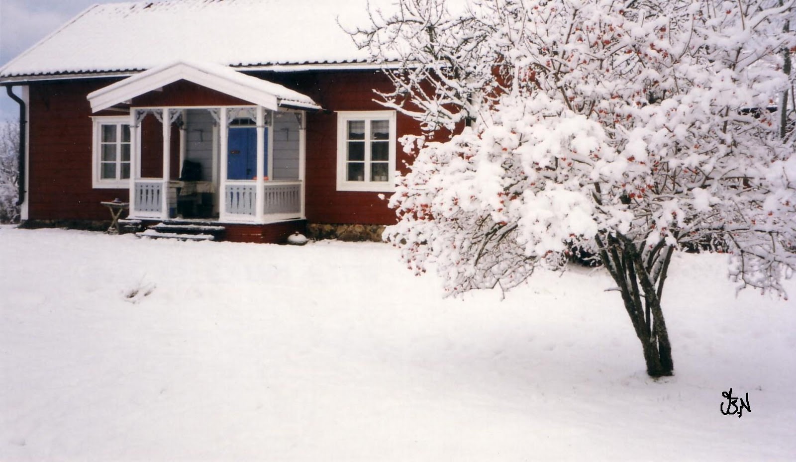 Man kan tycka att det är nog med vinterbilder nu, men jag kan inte låta bli att visa er en oemotståndlig bild på vårt kära Sigges torp i vinterskrud, en plats här på jorden dit jag alltid längtar!