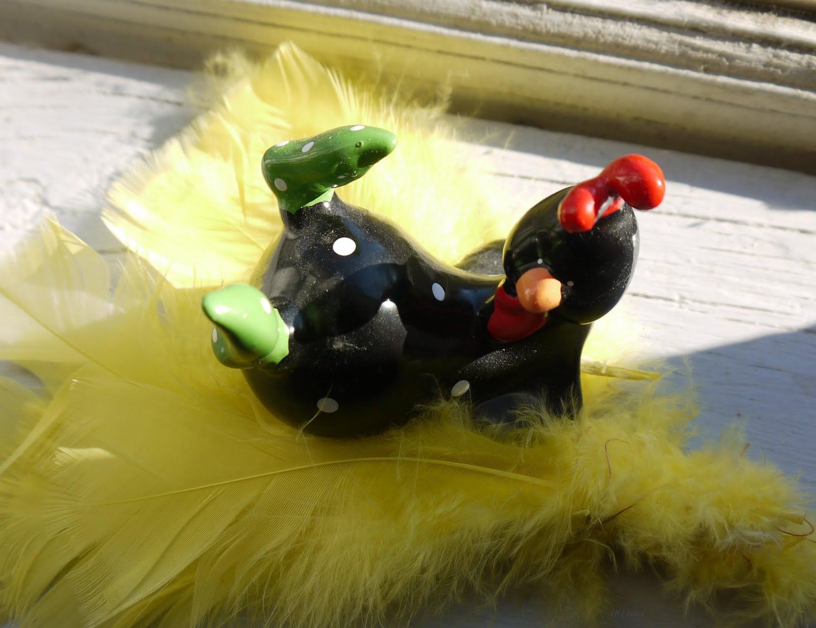 Här är den lata tuppen som solar sig på fönsterbrädan. Tänkte börja lite smått med att ”påska”! Så detta är det första inlägget i elsasdotters blogg denna påsk, men det blir mera. Strålande väder hitintills och måste väl fundera lite på matinköpen till helgen.