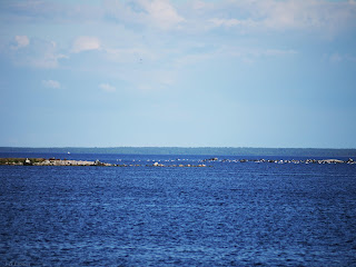 En hel fågelkoloni har slagit rot på några smala grunden ut mot havet. För långt bort för att fånga t.o.m med teleobjektivet.