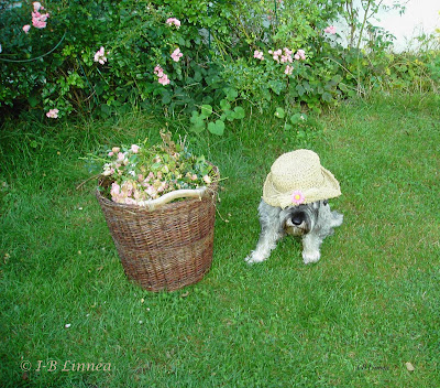 Så sött! Ja en hatt är viktig när solen är som starkast, även om man är hund :0)