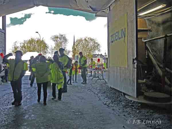 Tror att få kvinnor arbetade i tunnelbygget men nu fanns de med i samma uniform som goda informatörer, väl insatta i bygget. Hade turen att få sällskap med en som såg att jag ville fotografera och var både nyfiken och frågvis. Till vardags arbetade hon administrativt, men var då och då ner i tunnlarna.