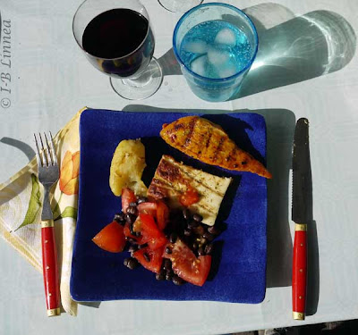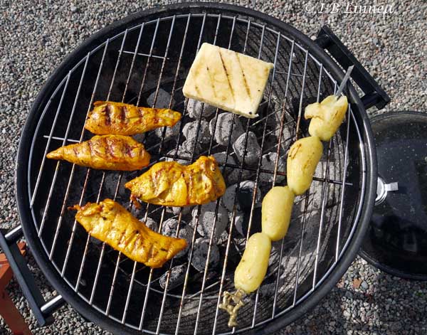 Antar att blommor, sommarklänningar och jordgubbar kanske kommer att dominera inläggen så jag väljer en somrig grill. Fick recept av en killkompis, saffransmarinerad kyckligfilé, gul som solen. Lite chili, olja, lime, vitlök osv.